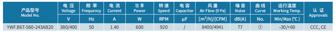 產(chǎn)品型號(hào) YWF.B6T-560-243AB20