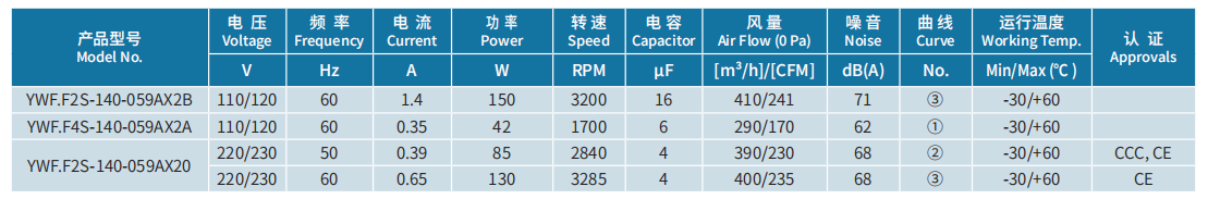產(chǎn)品型號(hào) YWF.F2S-140-059AX2B