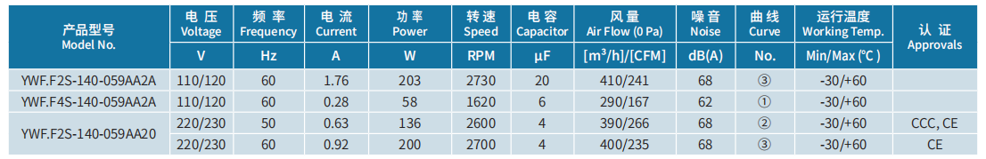 產(chǎn)品型號(hào) YWF.F2S-140-059AA2A