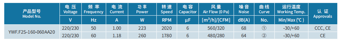 產(chǎn)品型號(hào) YWF.F2S-160-060AA20