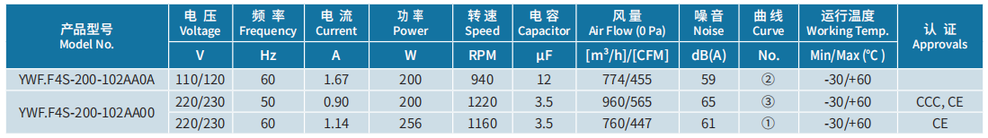產品型號 YWF.F4S-200-102AA0A