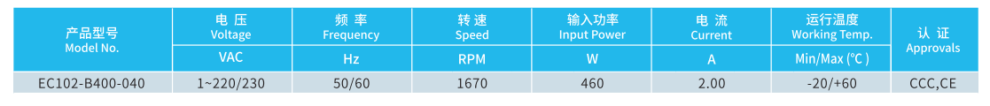 產(chǎn)品型號 EC102-B400-040