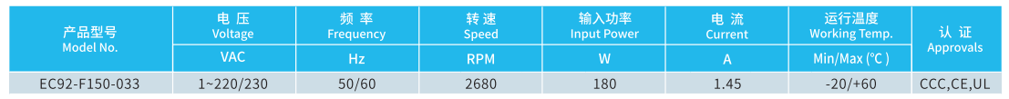產(chǎn)品型號 EC92-F150-033