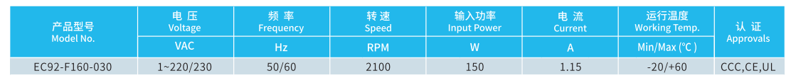 產(chǎn)品型號(hào) EC92-F160-030