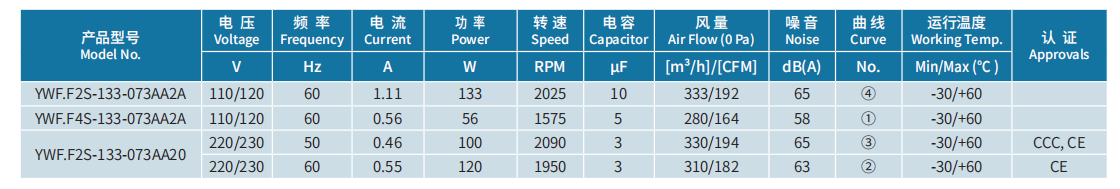 產(chǎn)品型號(hào) YWF.F2S-133-073AA20