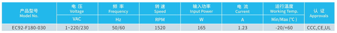 產(chǎn)品型號 EC92-F180-030