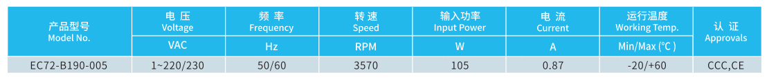 產(chǎn)品型號 EC72-B190-005