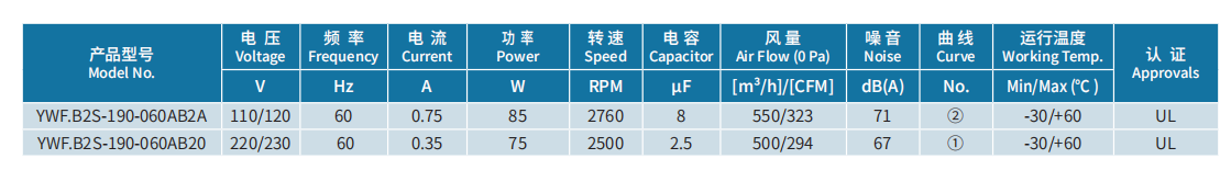 產(chǎn)品型號 YWF.B2S-190-060AB2A