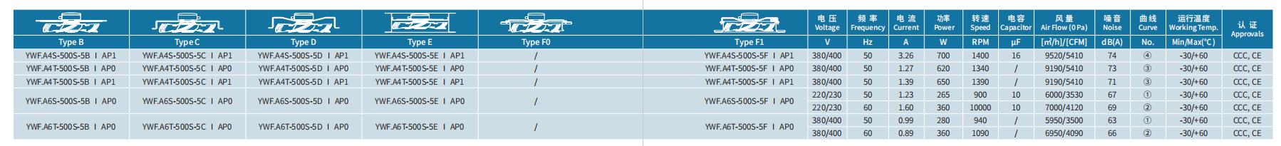 產(chǎn)品型號(hào) YWF.A4S-500S-5DIAP0