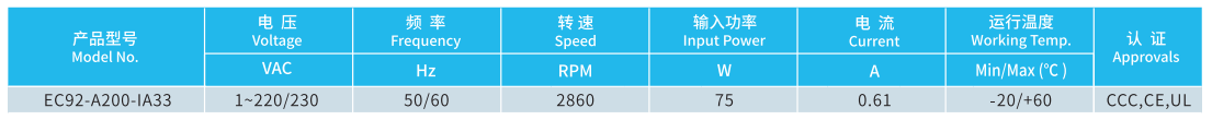 產(chǎn)品型號(hào) EC92-A200-IA33