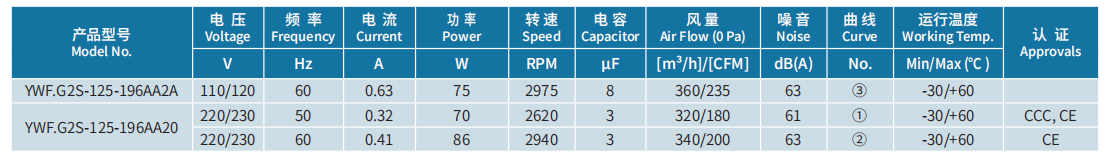 產(chǎn)品型號(hào) YWF.G2S-125-196AA2A