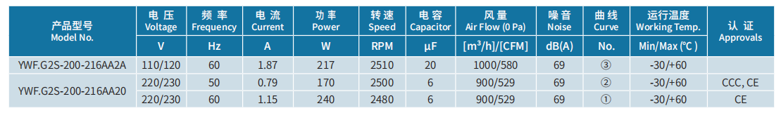 產(chǎn)品型號(hào) YWF.G2S-200-216AA2A