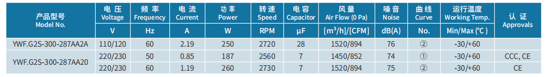 產(chǎn)品型號(hào) YWF.G2S-300-287AA2A