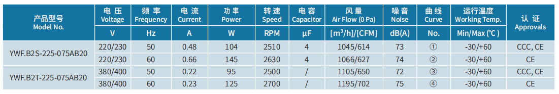 產(chǎn)品型號(hào) YWF.B2S-225-075AB20